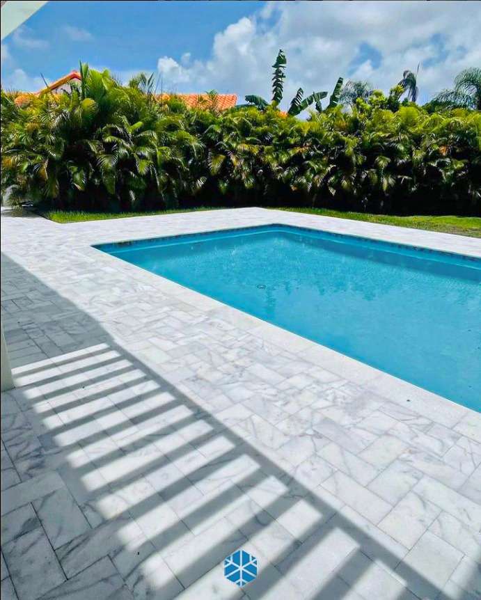 Upgrade your pool with our Arctic White Marble pool deck. These exquisite pavers are the perfect addition to create a luxurious and sophisticated poolside oasis. With their sandblasted, honed, and leather finishes, they offer a stunning combination of elegance and durability.