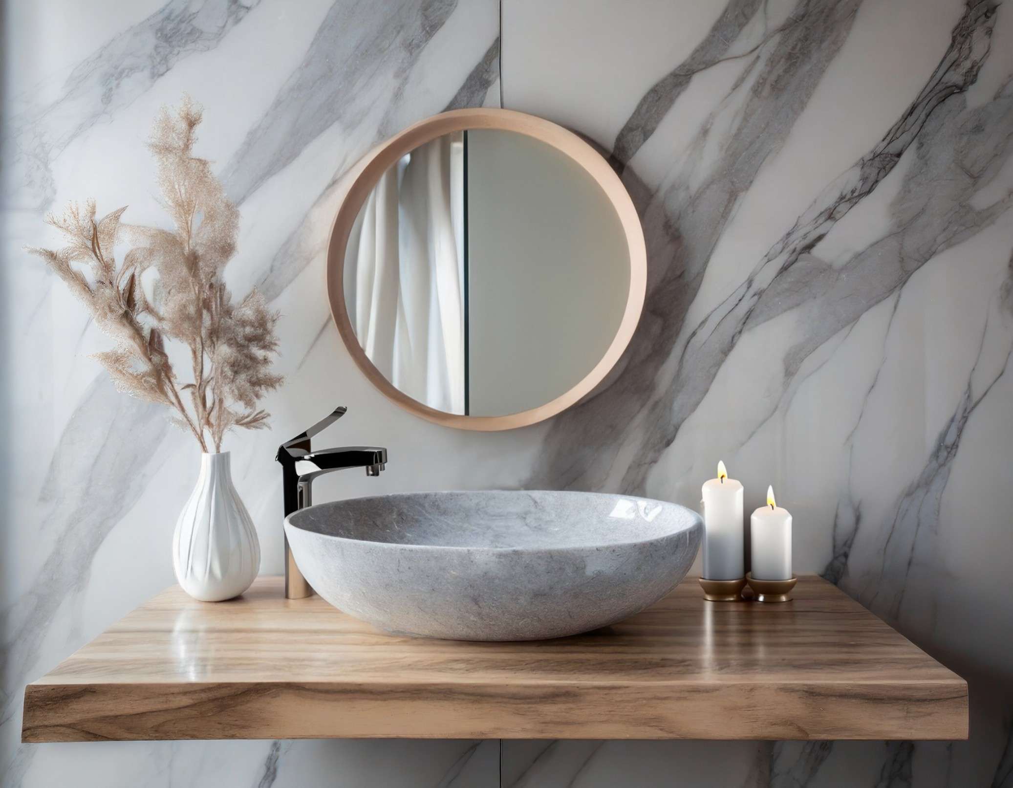 With its unique coloration and natural veining, each sink is truly one-of-a-kind, adding a touch of individuality to your bathroom design. The black marble’s deep tones and slight white veins create a captivating visual contrast that effortlessly complements a variety of interior styles.