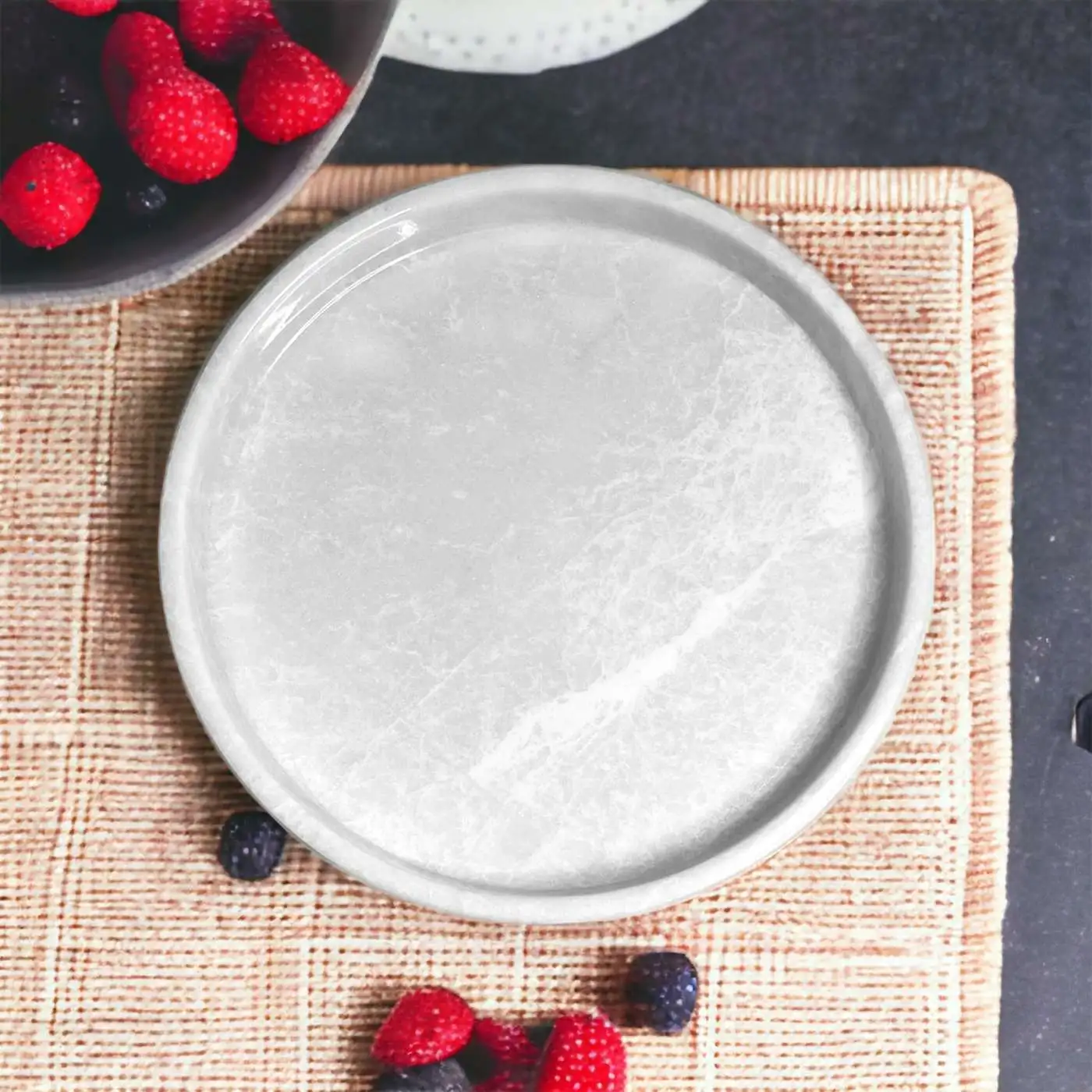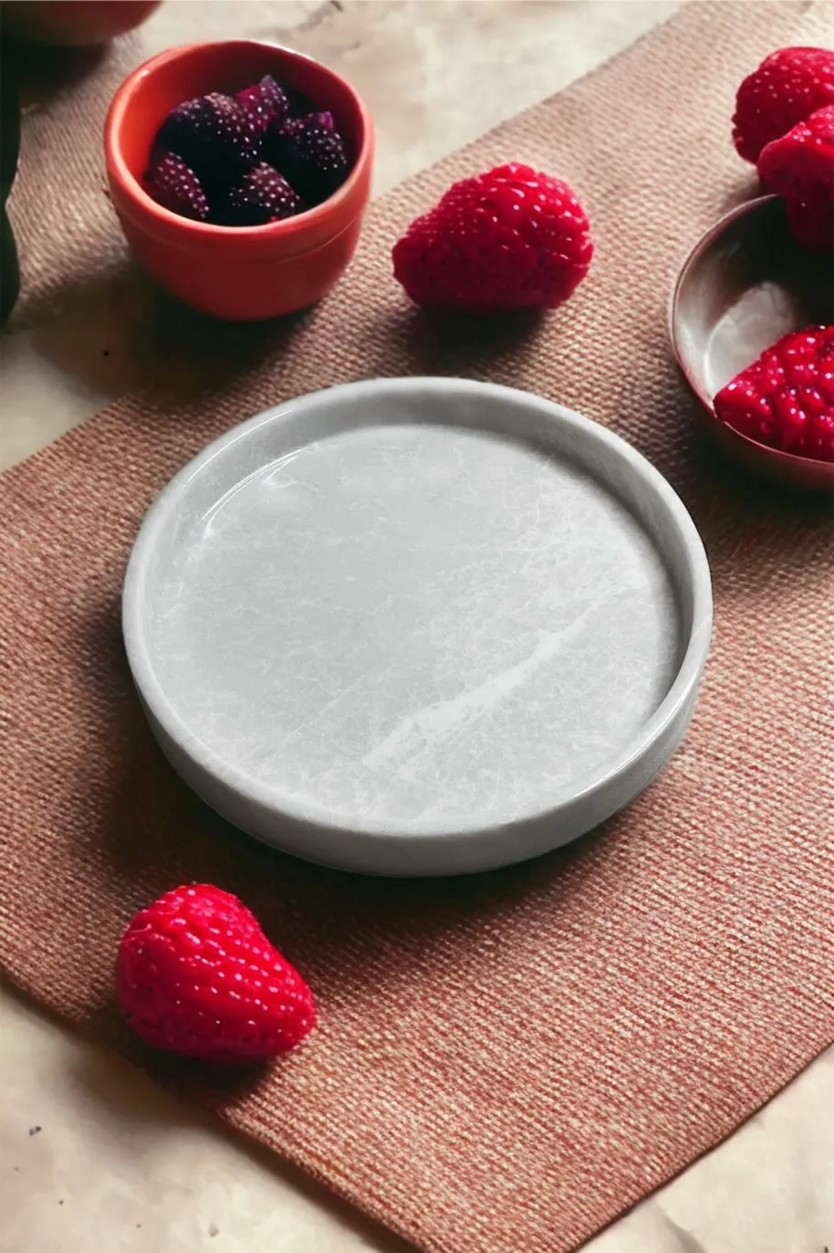 Crafted from premium white marble, this tray showcases nature’s artistry with its unique, slightly gray veins against a pristine white background. The polished and honed surface not only enhances the marble’s natural beauty but also provides a smooth, easy-to-clean surface.